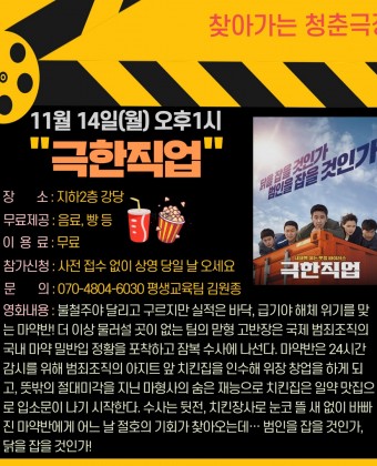 청춘극장 '극한직업' 영화관람 이용 안내