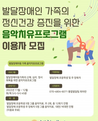 발달장애아동가족의 신체·심리·정서 회복을 위한 음악치유프로그램 이용자 모집