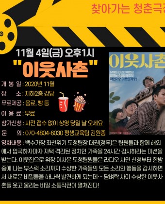 청춘극장 '이웃사촌' 영화관람 이용 안내