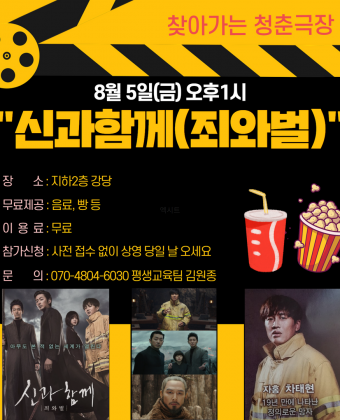 청춘극장 '신과함께(죄와벌)" 영화관람 상영 안내