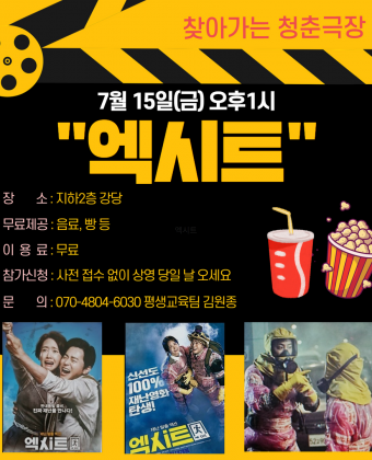 청춘극장 '엑시트' 영화관람 이용안내