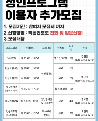 2022년 성인프로그램 이용자 추가 모집