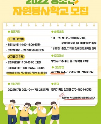 2022 하계 청소년자원봉사학교 자원봉사자 모집