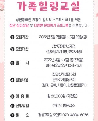 2022년 가족힐링교실 참여가정 모집