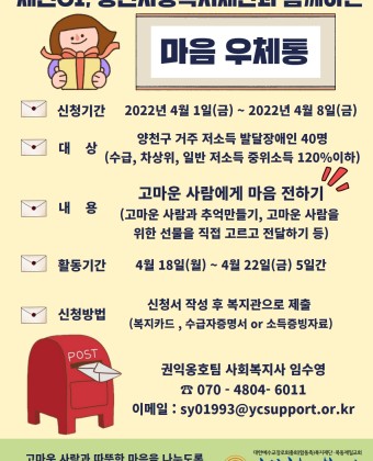 2022년 세진CI, 양천사랑복지재단과 함께하는 '마음 우체통' 참여자 모집
