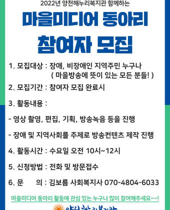 마을미디어 동아리 참여자 모집