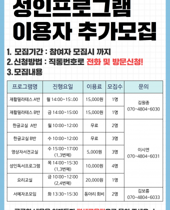 평생교육팀 성인장애인 프로그램 추가모집