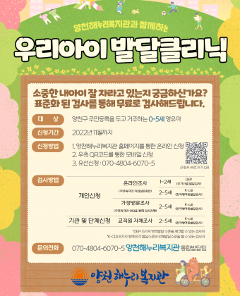 우리아이 발달 클리닉(영유아발달검사) 참여 대상자 모집