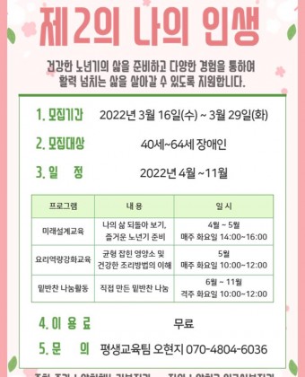 2022년 인생이모작 '제 2의 나의 인생' 참여자 모집