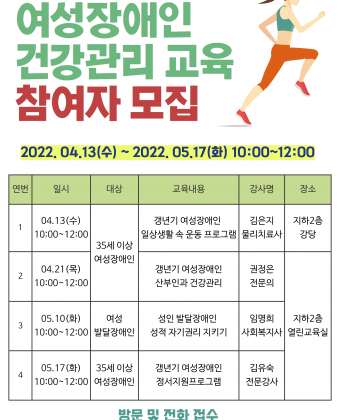 여성장애인 건강관리 교육 참여자 모집