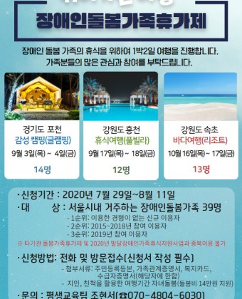 2020 장애인돌봄가족휴가제 "쉬어가는 여행" 참가자 모집