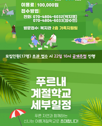 [모집공고] 2019년 여름계절학교 '푸르내 계절학교' 참가자 모집