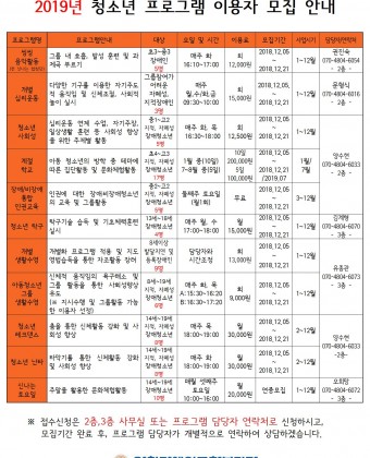 2019년 동계 청소년자원봉사학교 봉사자 모집