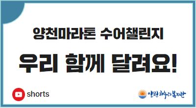 4월 12일 양천마라톤대회를 앞두고 양천해누리복지관 직원 및 이용자분들과 수어챌린지를 찍었습니다. 우리 함께 달려요!~~~