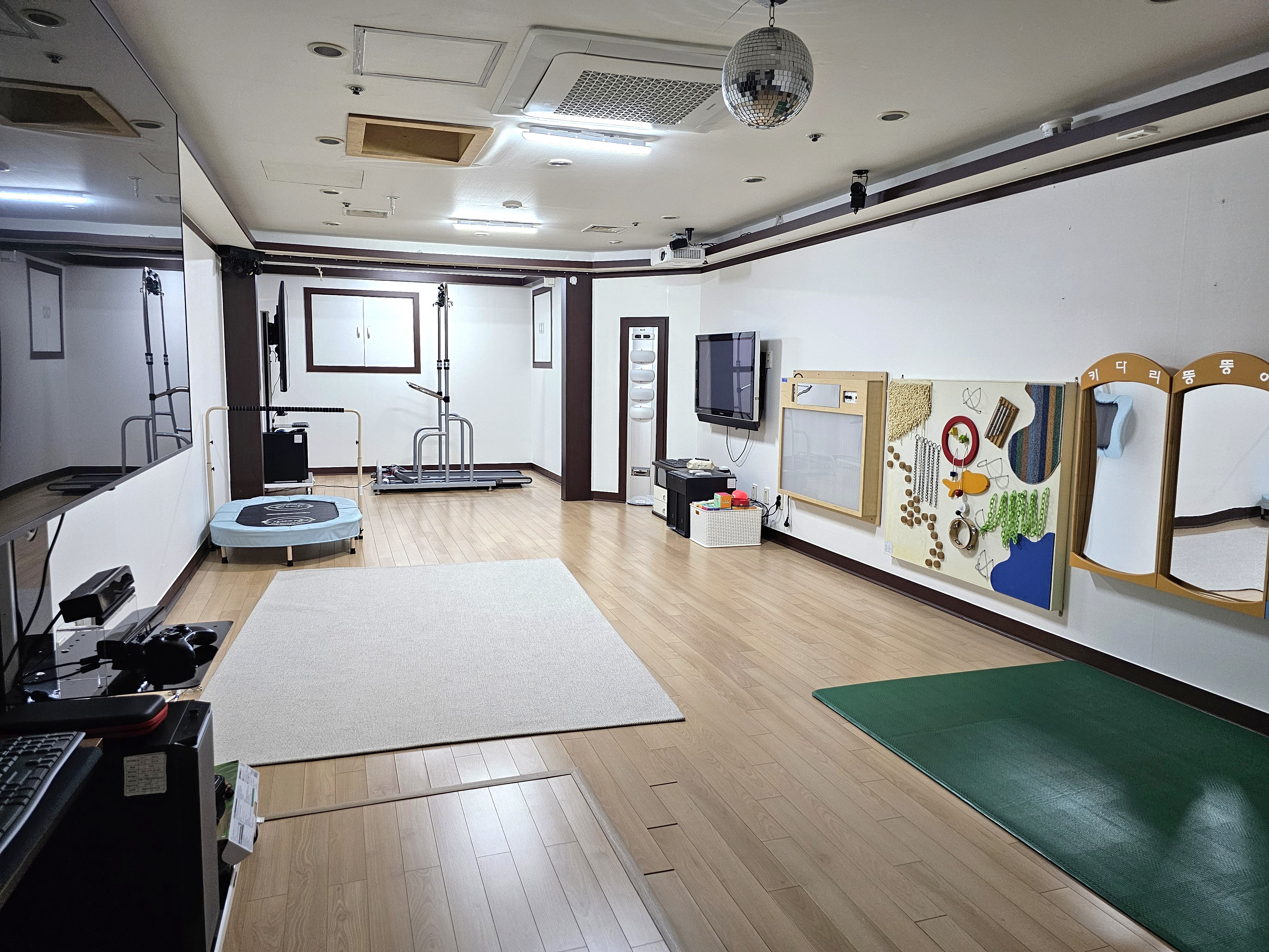 통합사무실1(건강누리팀, 행복동행팀, 채움생활팀, 사람이음팀), 상담실, 물리활동실, 작업활동실, 감각통합실, 스마트발달트레이닝실, 음악활동실, 미술활동실, 함께배움실, 가사활동실, 통신실
