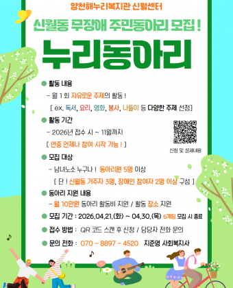 신월동에 거주하는 장애인/보호자, 신월센터 이용자, 양천구에 거주하는 장애인